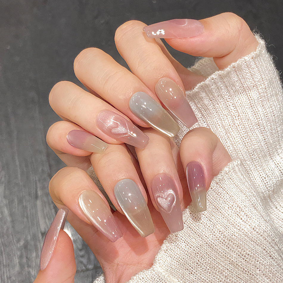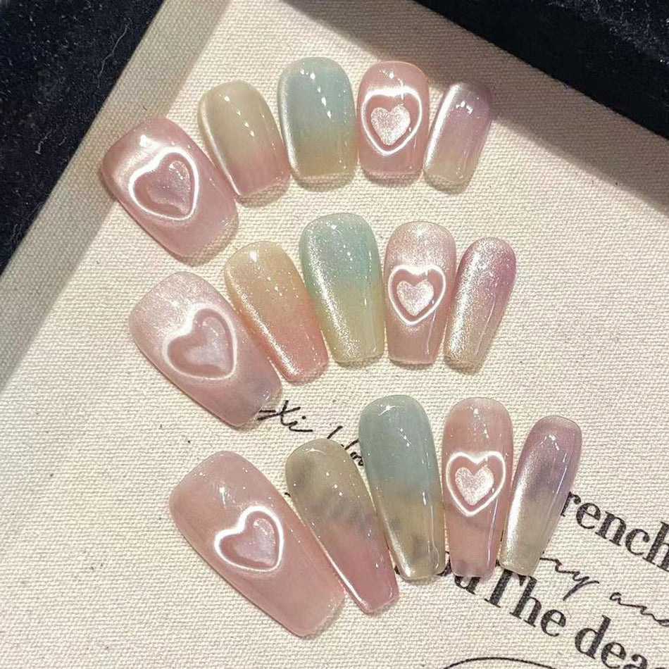These enchanting press-on nails feature a mesmerizing color-shifting effect—gentle tilts of your fingers reveal hidden hearts that shimmer and transform. A poetic play of light, love, and illusion, perfect for the romantic soul who adores subtle magic at her fingertips.