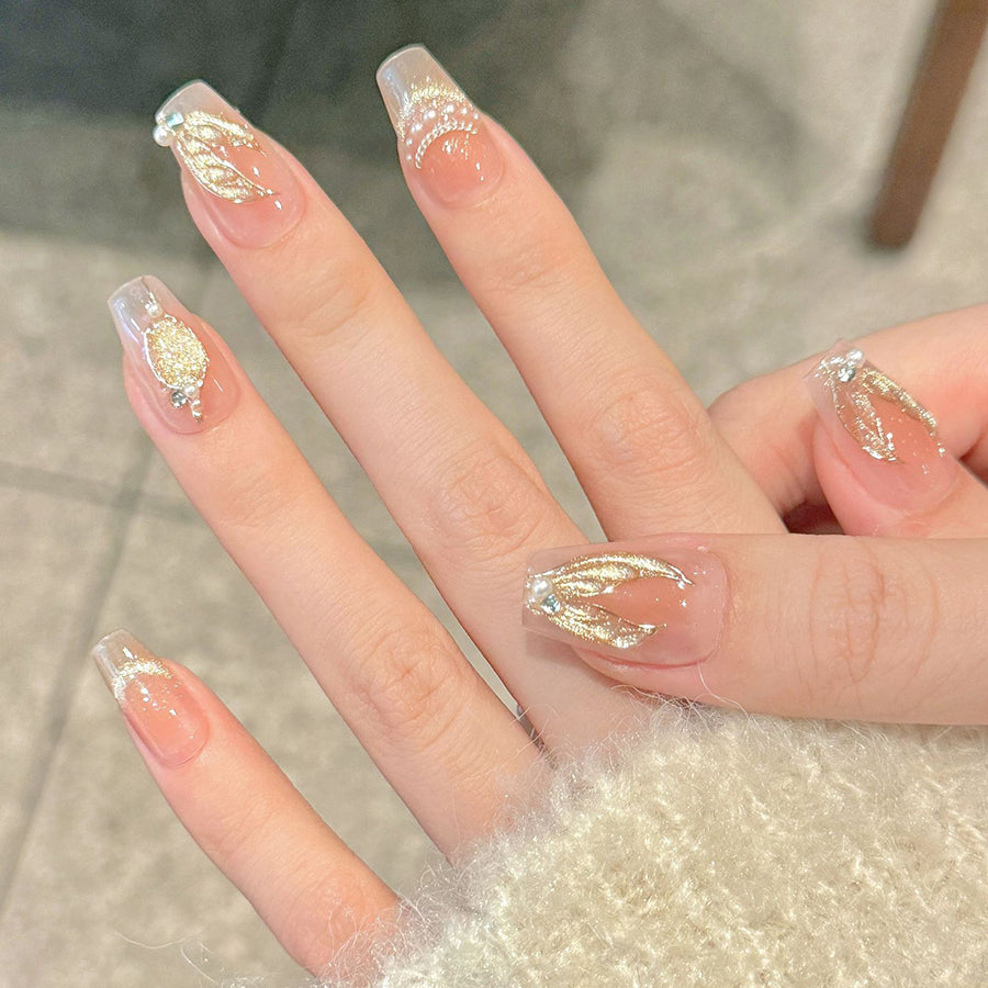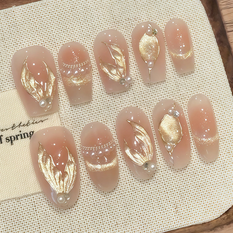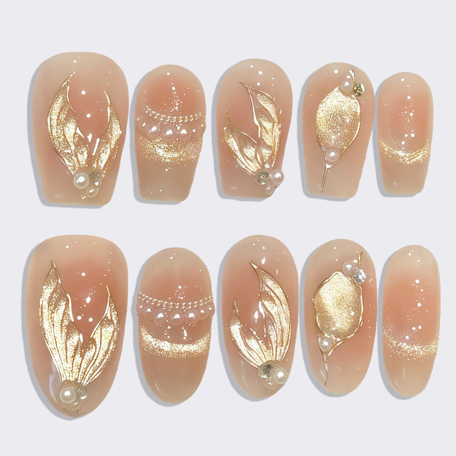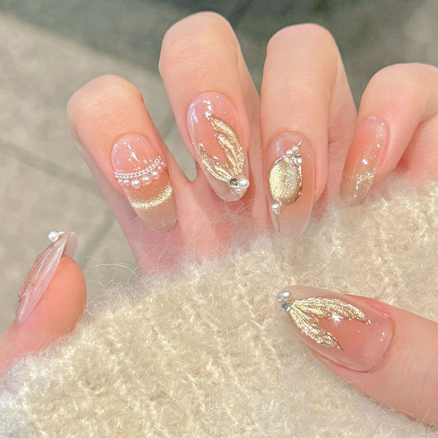 Embrace the enchantment of the deep with these captivating golden mermaid tail nails. Featuring shimmering scales and a radiant finish, they evoke the mystery and allure of the ocean’s most legendary creatures. Perfect for adding a touch of fantasy and luxury to your everyday look, these nails sparkle with an undersea magic that is truly irresistible.