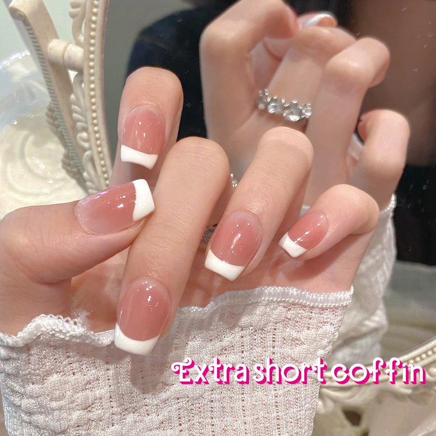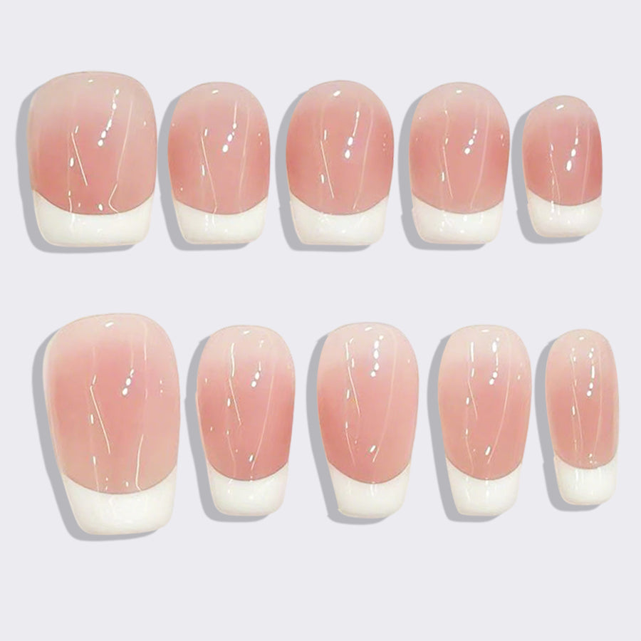 Embrace effortless elegance with these Simple Charm press-on nails. Featuring a clean, soft pink base and delicate white tips, their minimalist design is accented with subtle gold veining for a touch of grace—beauty refined to its simplest form.